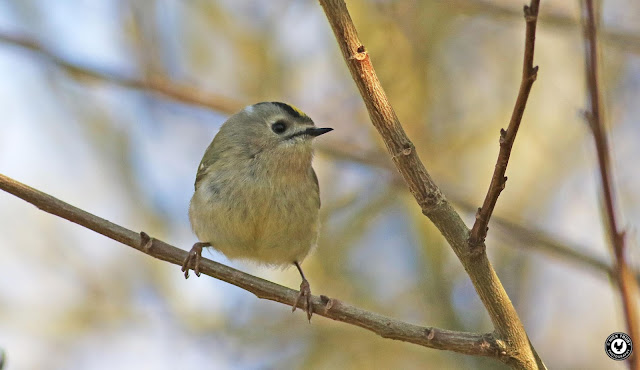 I heard a gentle refrain coming from trees next to the main track, a song which for me is one of the definitive early sounds of spring, a Willow Warbler singing! Willow warblers are really breeding birds of more northern climes and I know them and their song very well from our holidays in Scotland. Any Willow Warblers encountered locally are most likely just passing through on passage. They are very similar to Chiffchaffs but have subtle structural differences such as longer wings which help propel them on much longer migration journeys, they spend our winter in tropical Africa. Plumage variation compared to Chiffchaff are very slight too, Willow Warblers tend to have lighter coloured legs and sport a brighter yellowish and more obvious supercilium. The best and easiest way to separate the two species is by voice and Willow Warblers, such as the one we could hear singing, have a lovely melodic whistling short song that starts high and then descends, quite different to the Chiffchaffs repetitive monosyllabic chant. We listened intently to the Willow Warbler but finding it was much harder despite the lack of leaves on the trees. And when we did pin it down it was very active making grabbing good views difficult. Eventually though it stayed still and in the open for long enough for me to grab a shot or two. This was quite a dull individual and a far cry from the very yellow fresh juveniles that we'd see in the autumn.